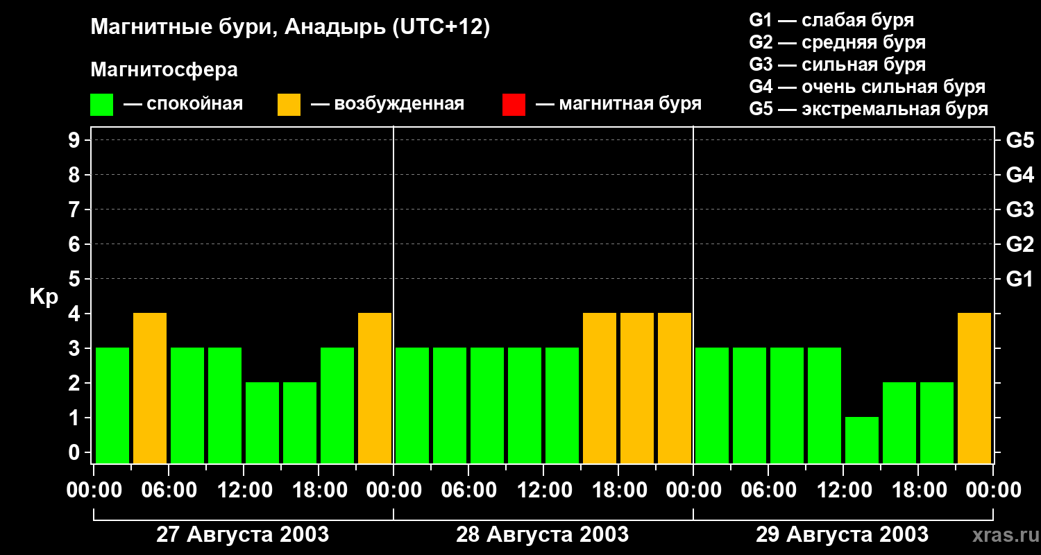 Магнитные бури в Анадыре — 29 августа 2003 года
