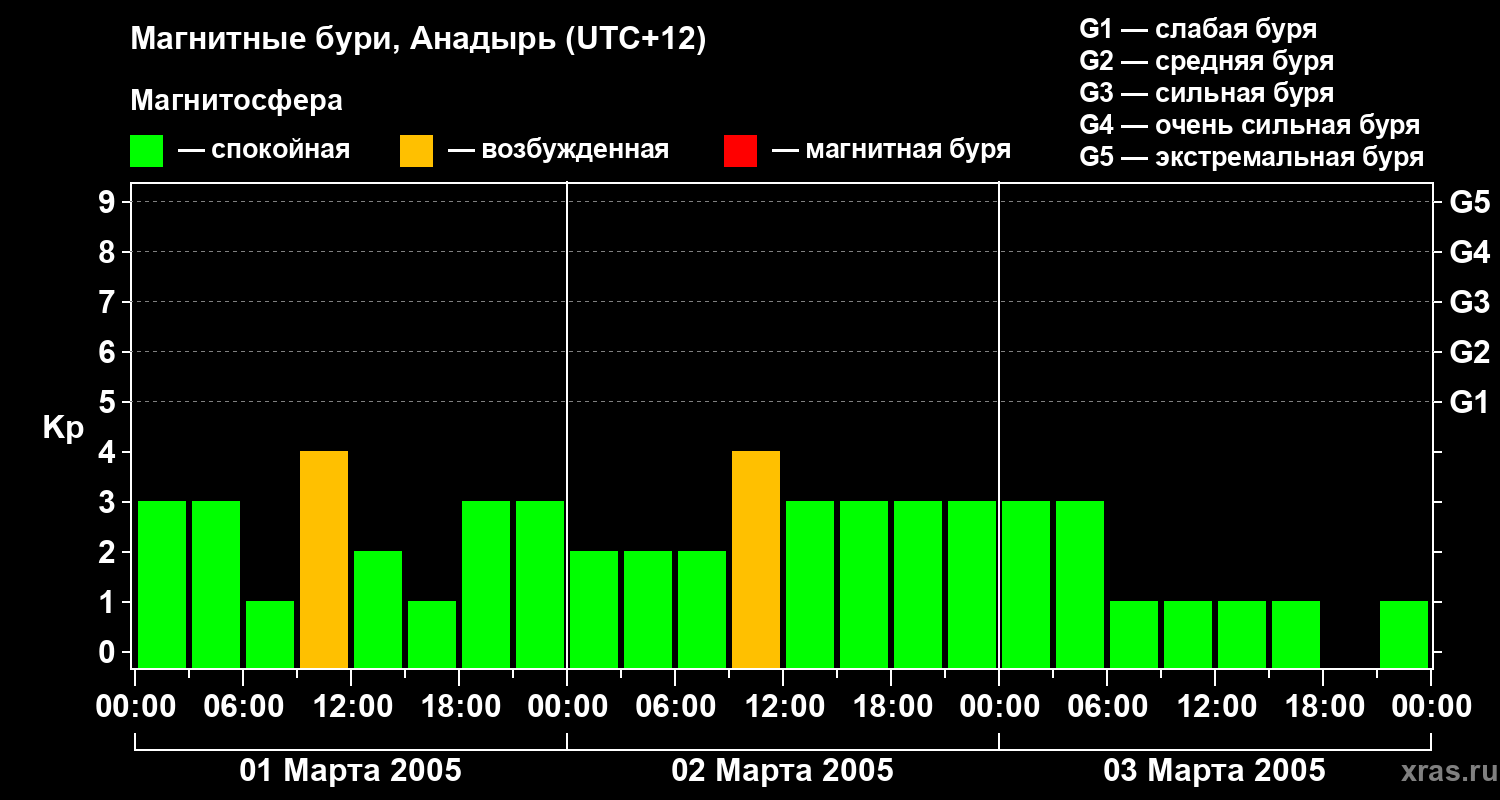 Магнитные бури в Анадыре — 3 марта 2005 года