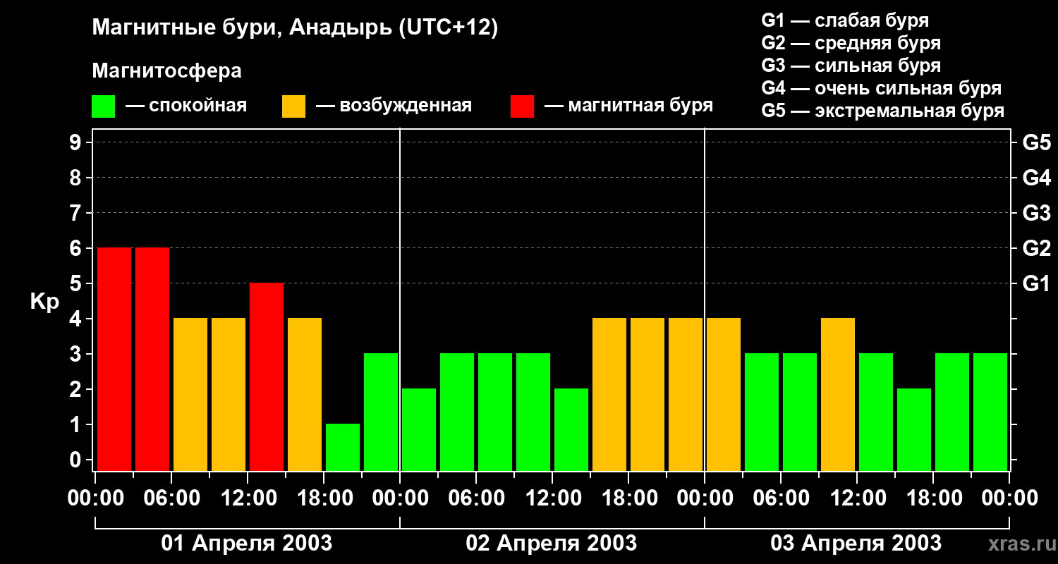 Магнитные бури в Анадыре — 3 апреля 2003 года