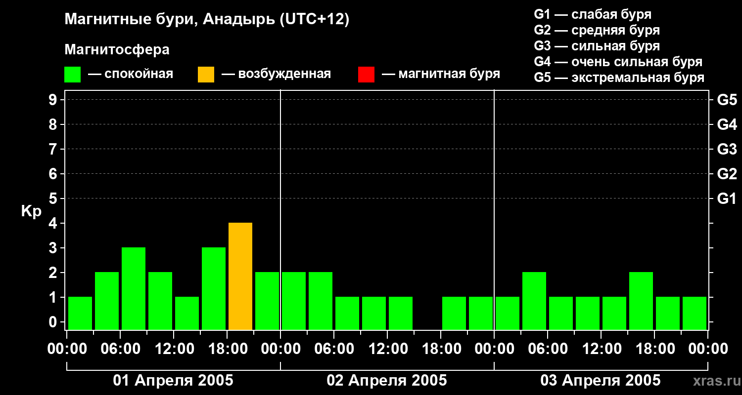 Магнитные бури в Анадыре — 3 апреля 2005 года