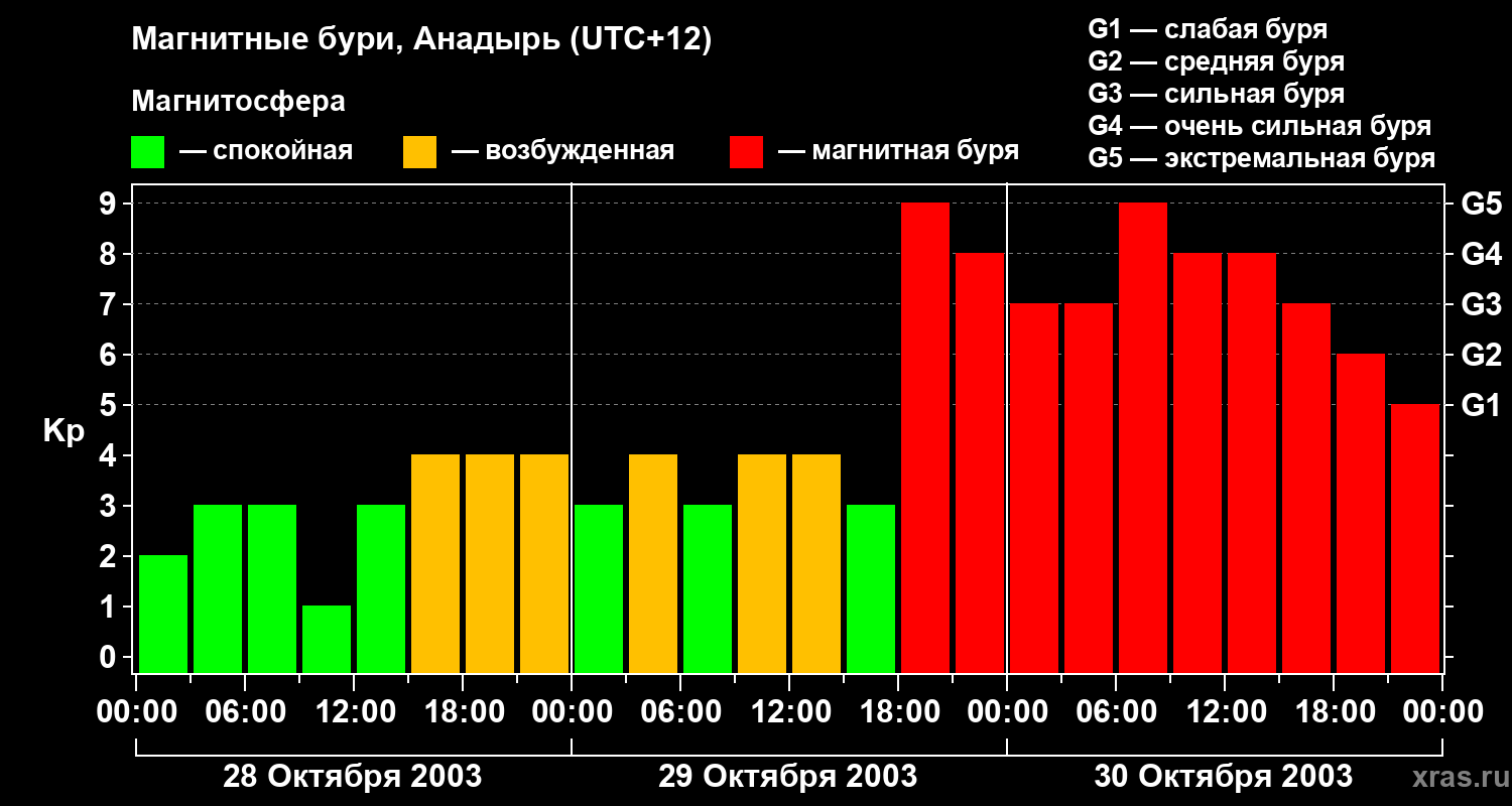 Магнитные бури в Анадыре — 30 октября 2003 года