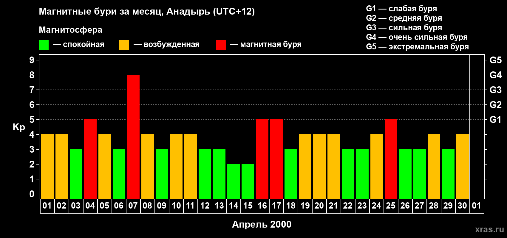 Магнитные бури в Анадыре — 30 апреля 2000 года