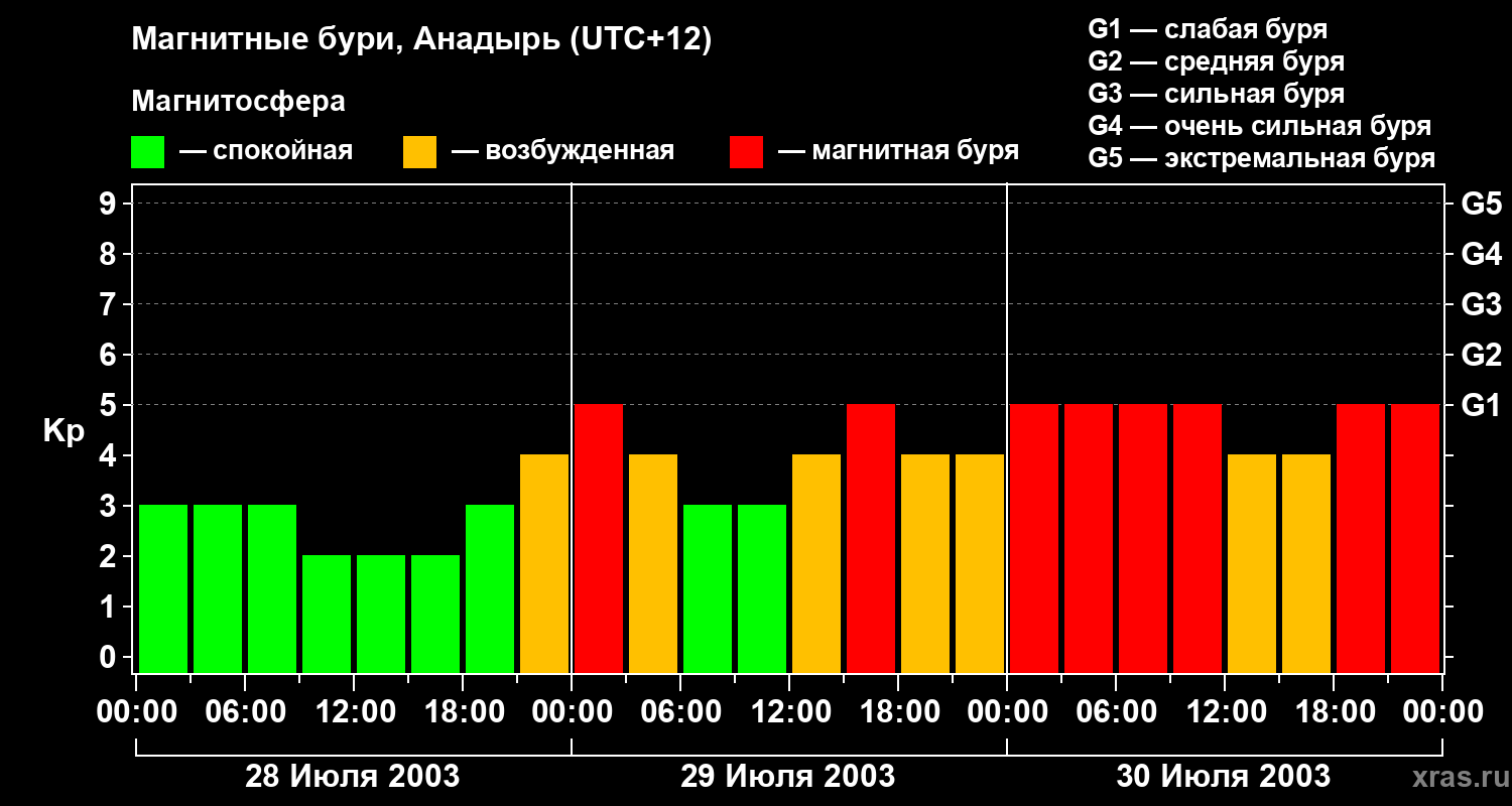 Магнитные бури в Анадыре — 30 июля 2003 года