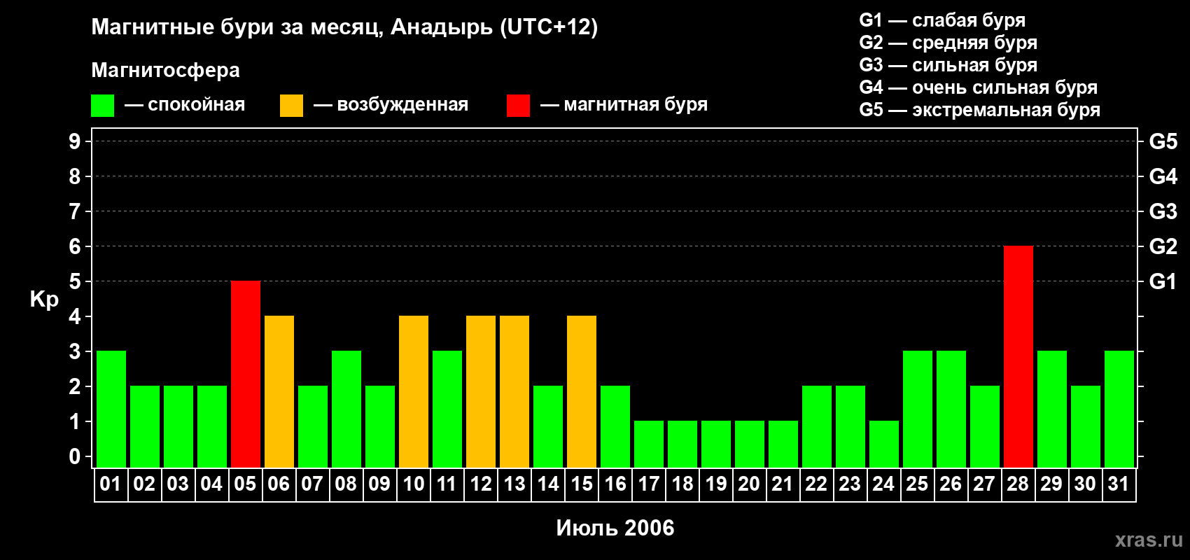 Магнитные бури в Анадыре — 31 июля 2006 года