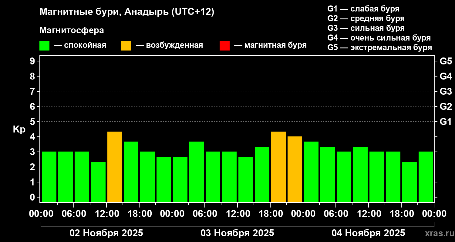 Магнитные бури в Анадыре 4 ноября 2025 года