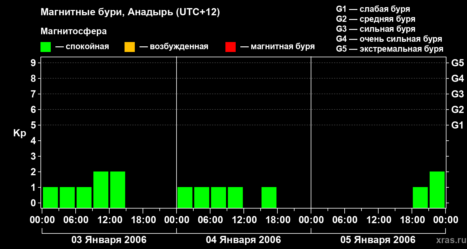 Изменения геомагнитного индекса Kp с 3 по 5 января 2006 года для средних широт
