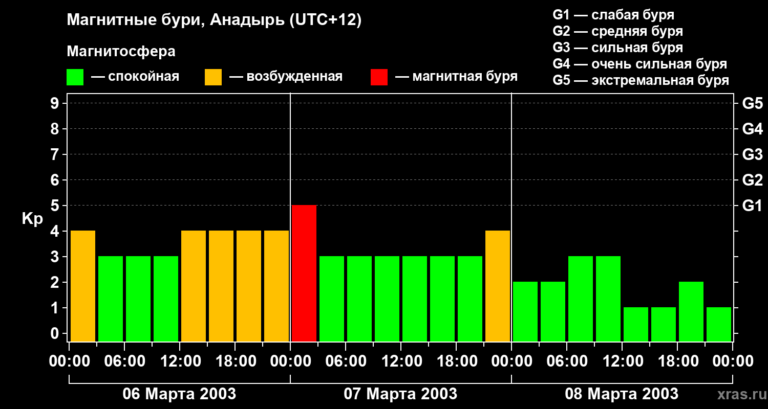 Магнитные бури в Анадыре — 8 марта 2003 года