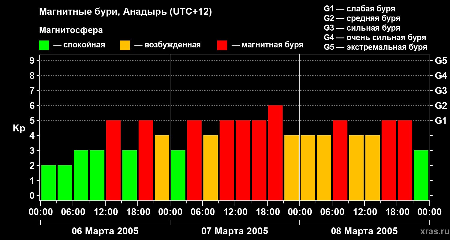 Магнитные бури в Анадыре — 8 марта 2005 года