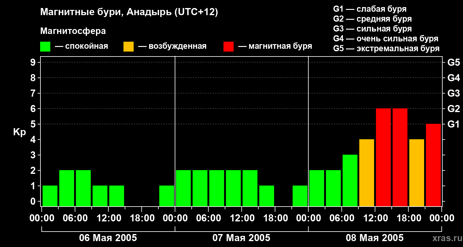 Магнитные бури в Анадыре — 8 мая 2005 года