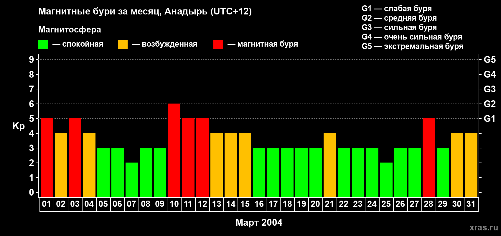 Список магнитных бурь в марте 2004 года