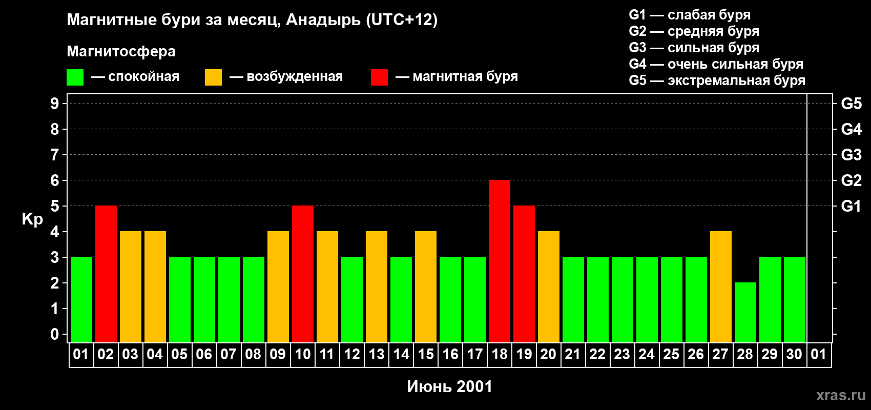 Список магнитных бурь в июне 2001 года
