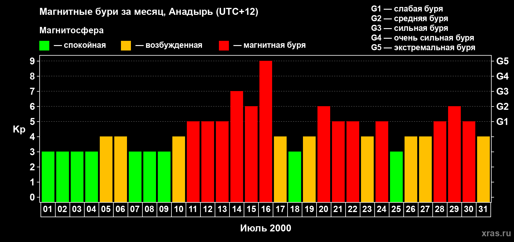 Список магнитных бурь в июле 2000 года