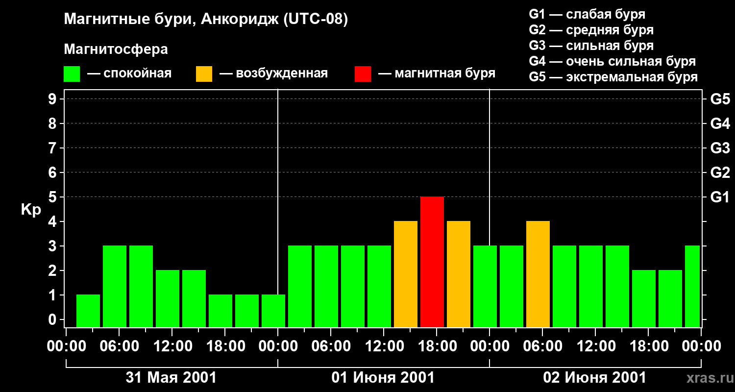 Магнитные бури в Анкоридже 2 июня 2001 года