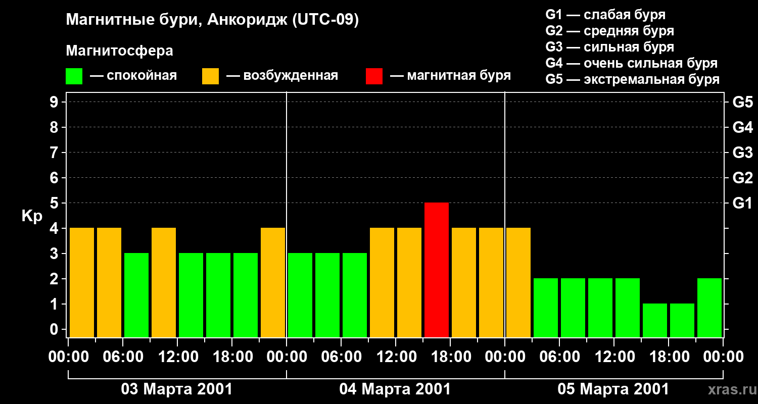 Магнитные бури в Анкоридже — 5 марта 2001 года