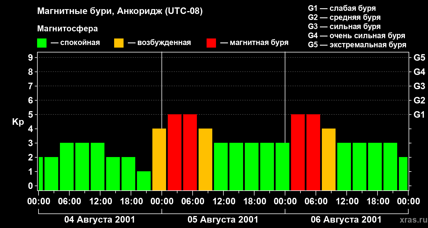 Магнитные бури в Анкоридже — 6 августа 2001 года