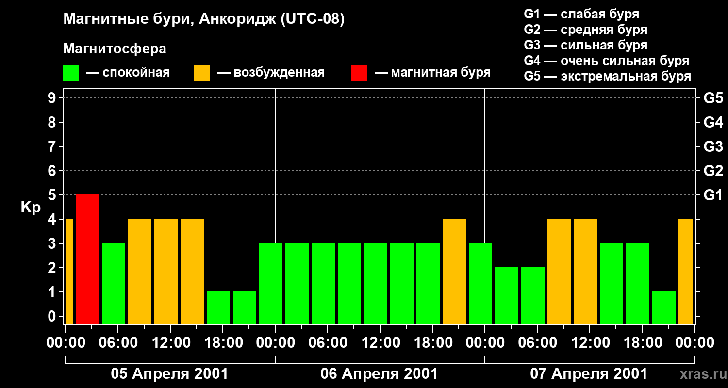 Магнитные бури в Анкоридже — 7 апреля 2001 года