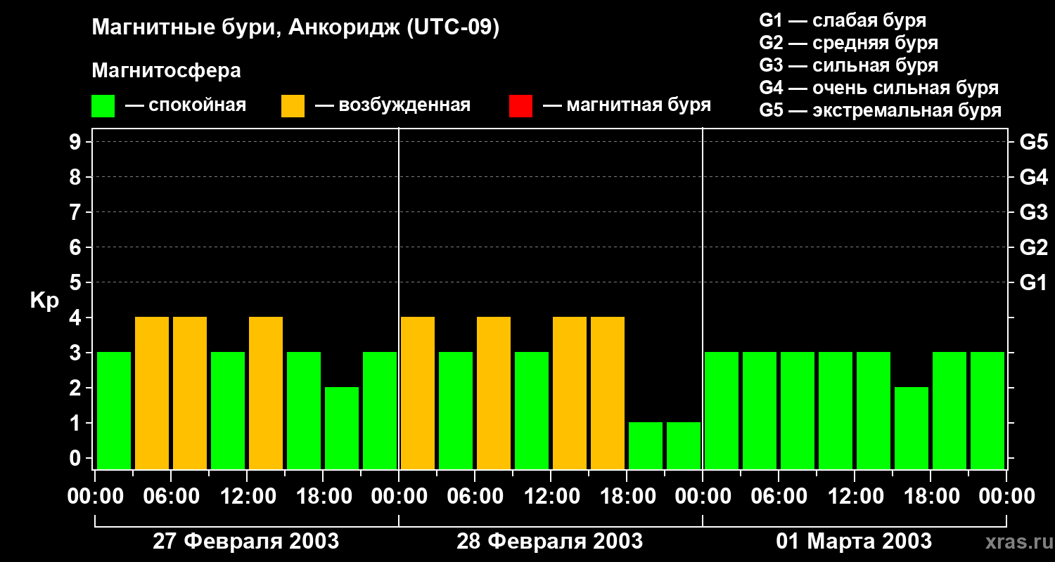 Магнитные бури в Анкоридже — 1 марта 2003 года