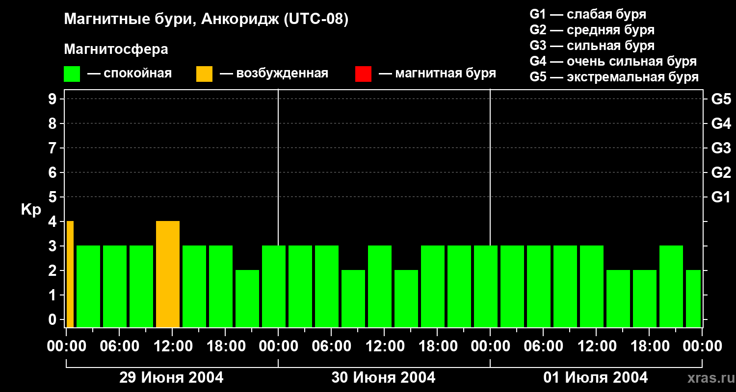 Магнитные бури в Анкоридже — 1 июля 2004 года