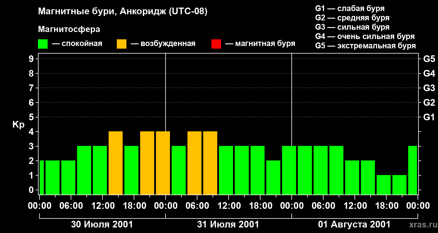 Магнитные бури в Анкоридже 1 августа 2001 года