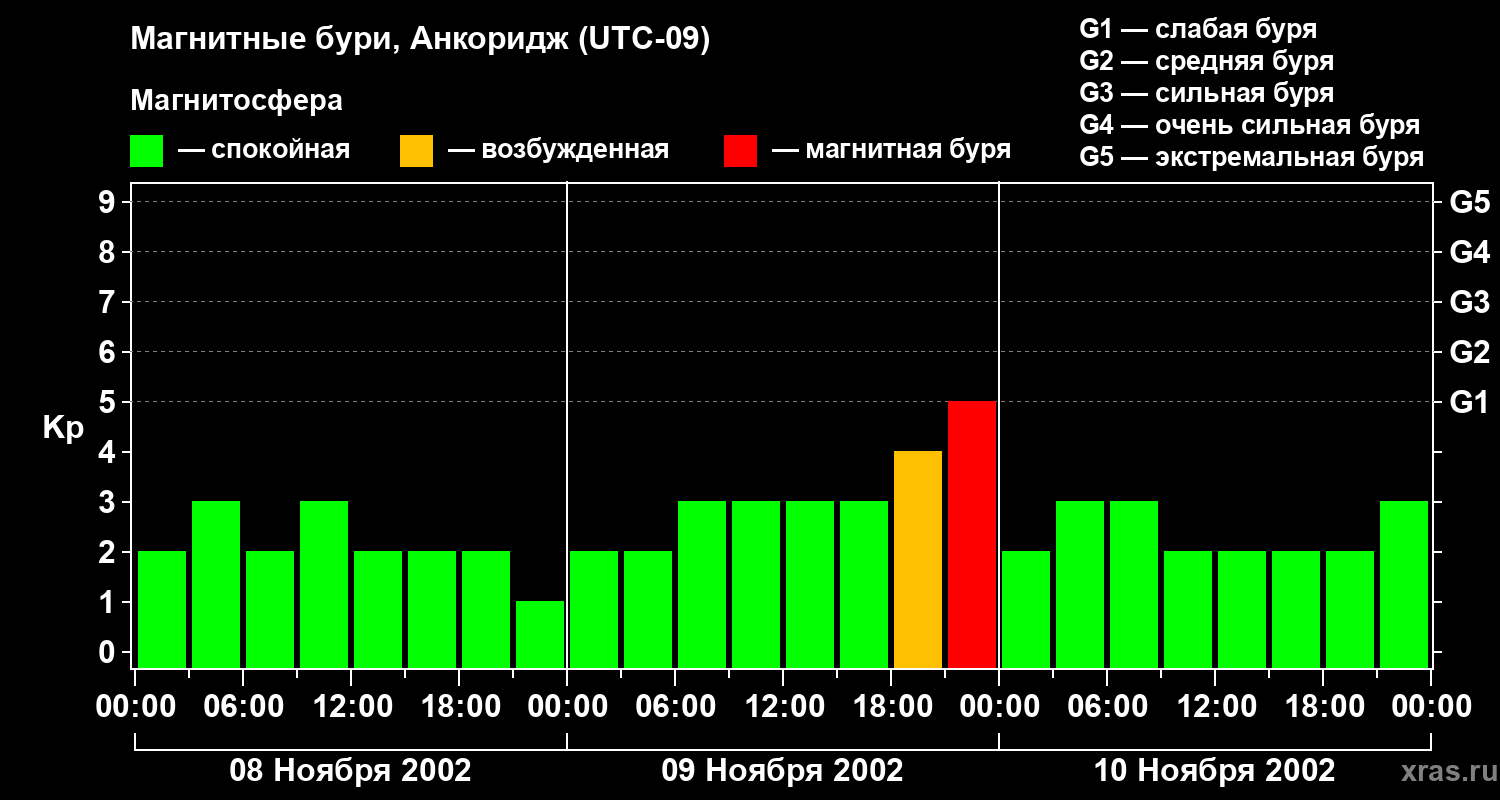 Магнитные бури в Анкоридже в ноябре 2002 года