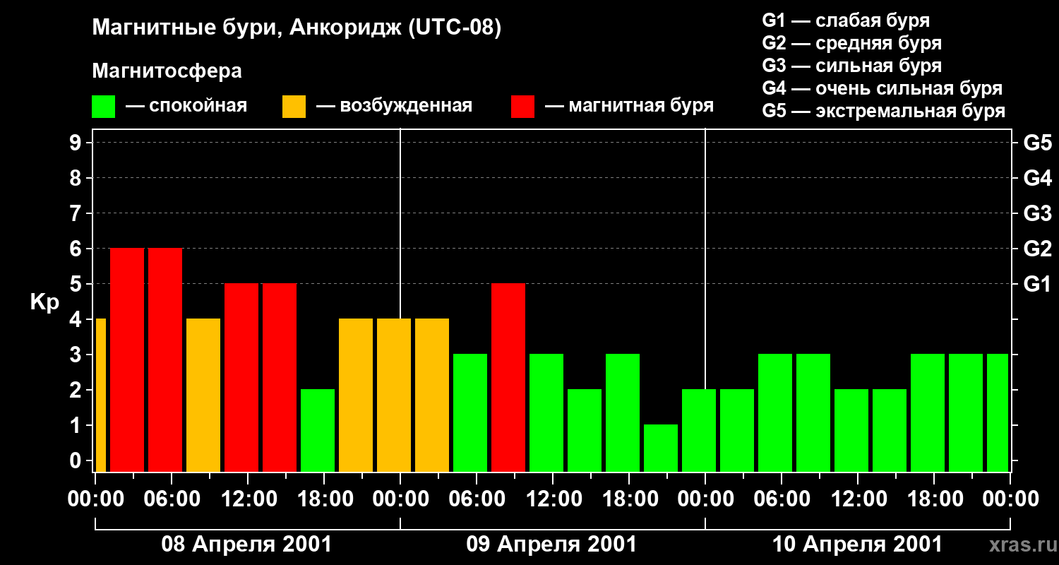 Магнитные бури в Анкоридже — 10 апреля 2001 года