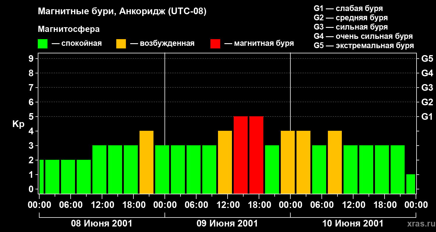 Магнитные бури в Анкоридже — 10 июня 2001 года
