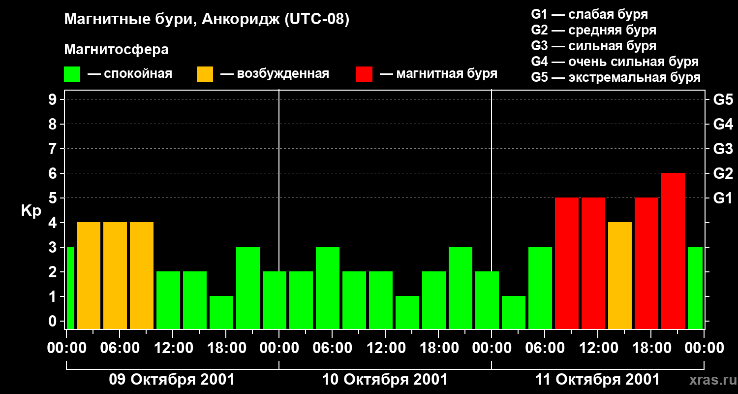 Магнитные бури в Анкоридже — 11 октября 2001 года