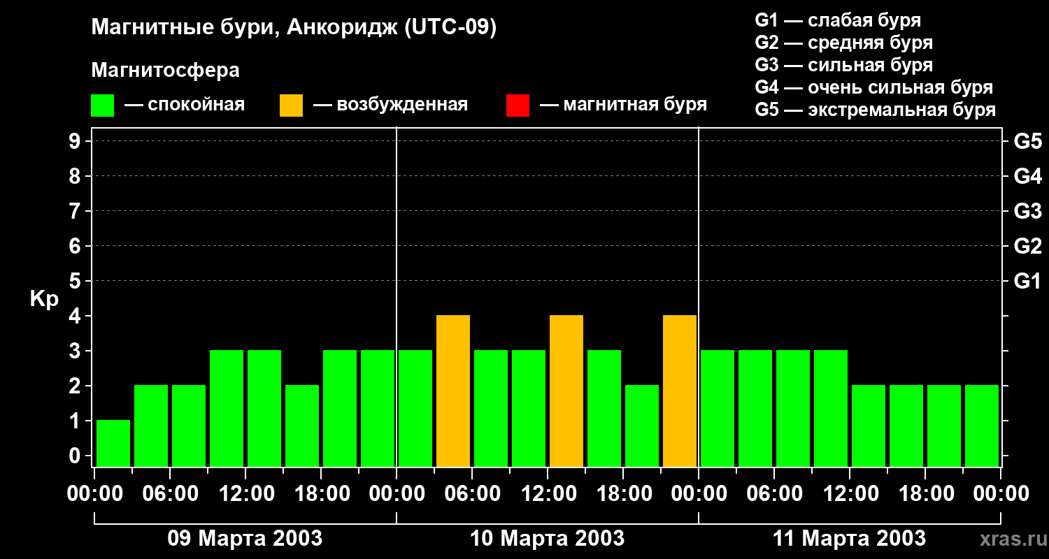 Магнитные бури в Анкоридже — 11 марта 2003 года