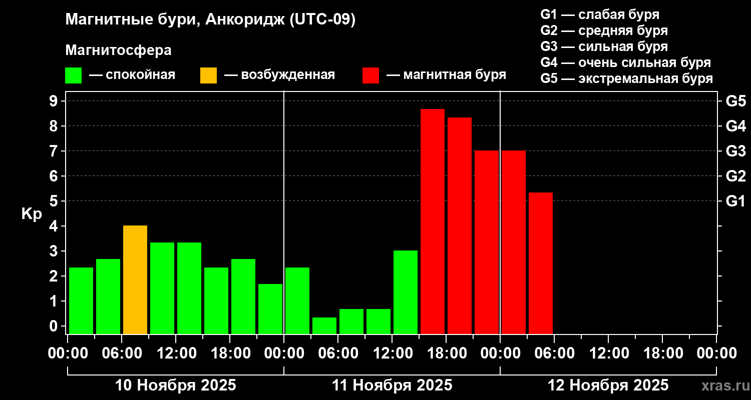 Магнитные бури в Анкоридже — 12 ноября 2025 года