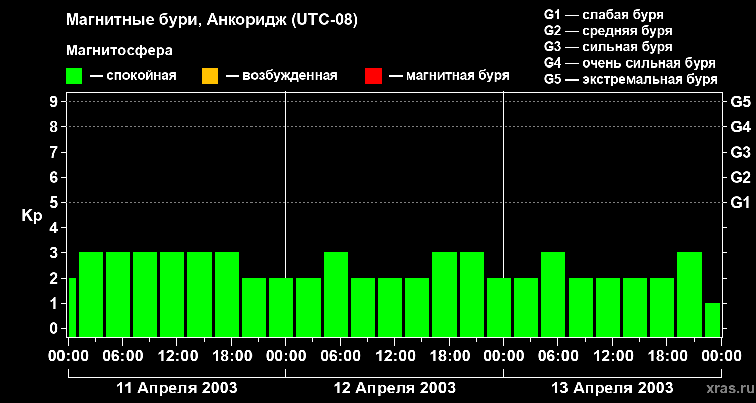 Магнитные бури в Анкоридже — 13 апреля 2003 года