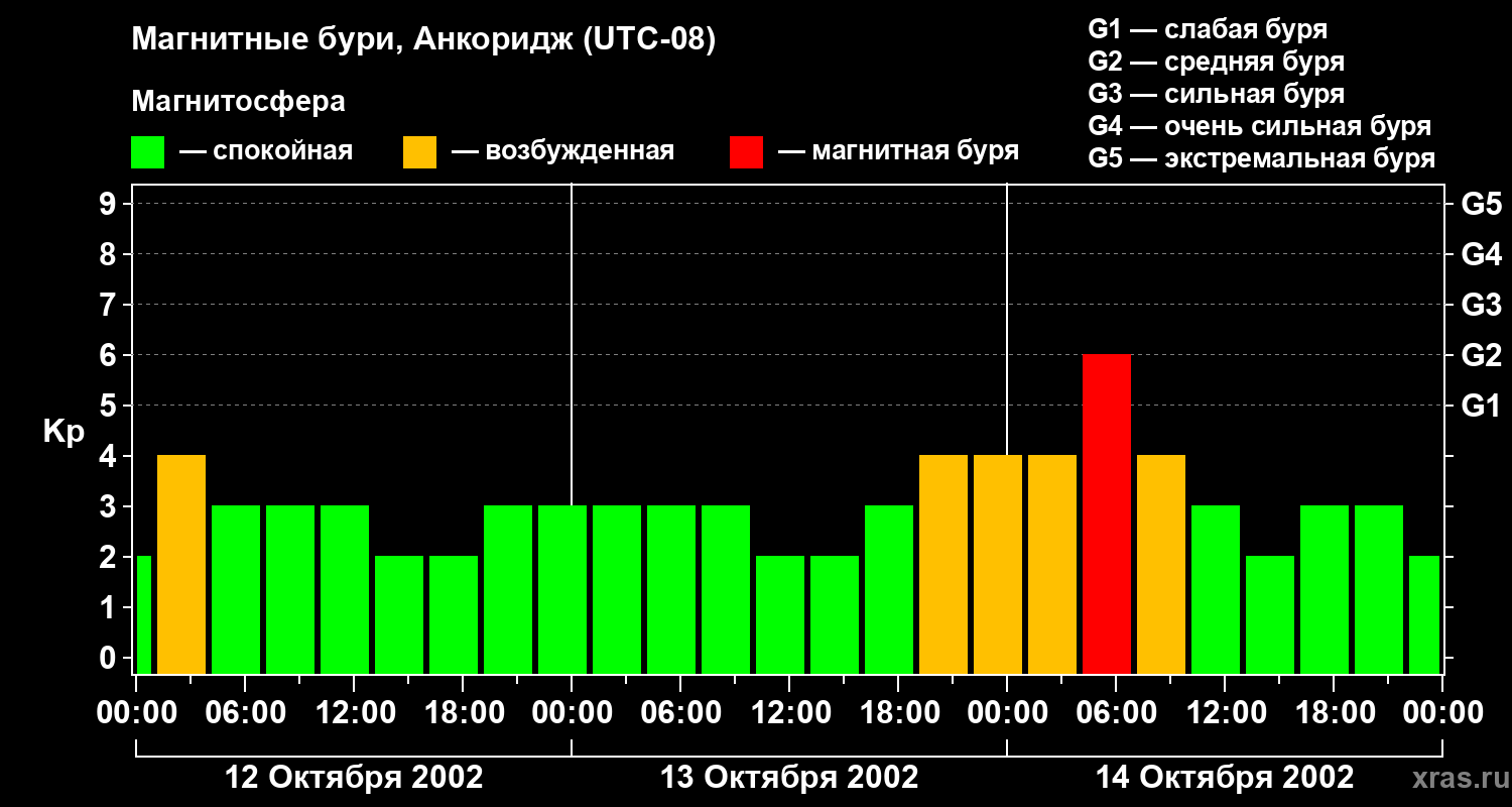 Магнитные бури в Анкоридже — 14 октября 2002 года