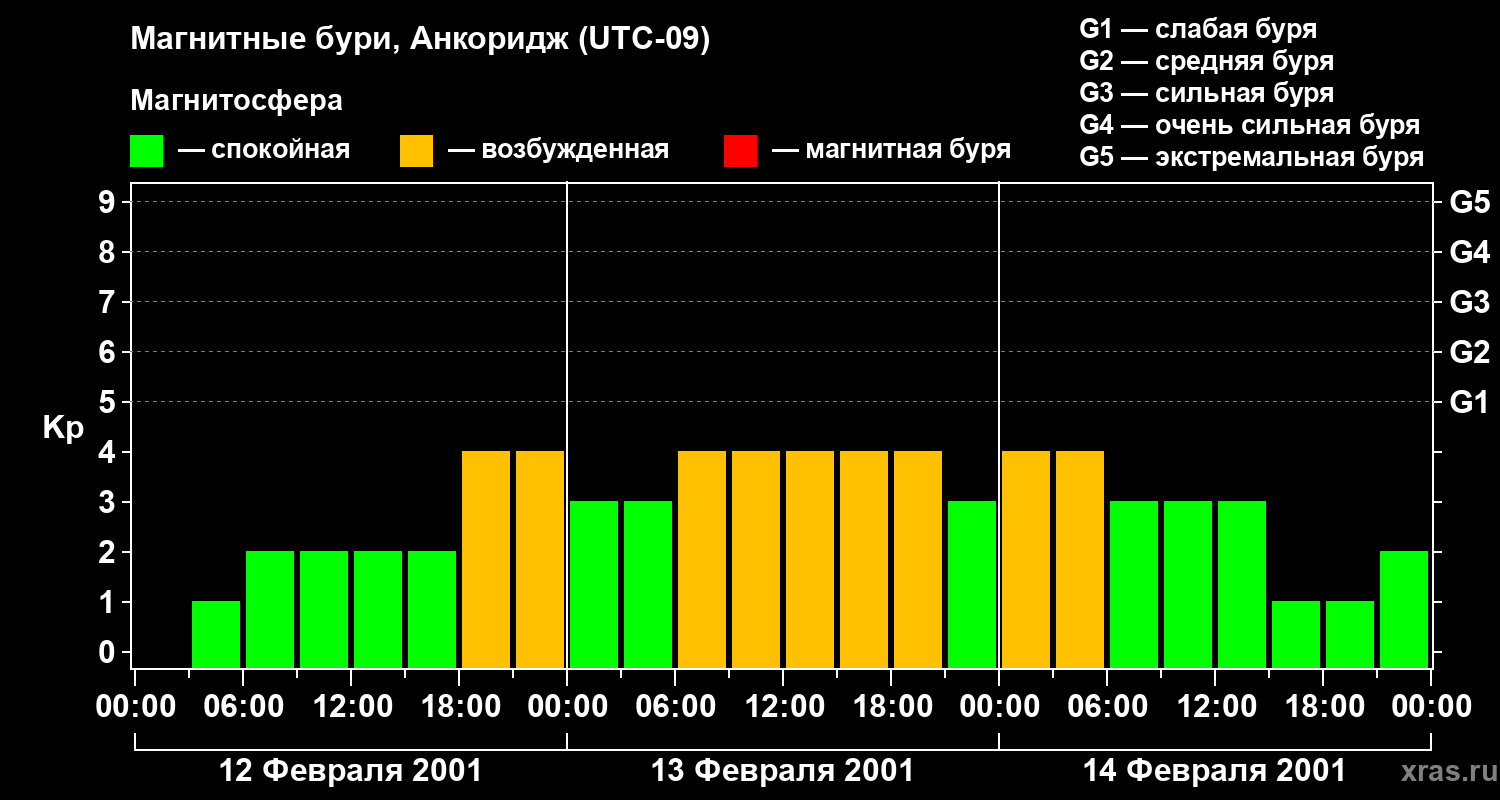 Магнитные бури в Анкоридже — 14 февраля 2001 года