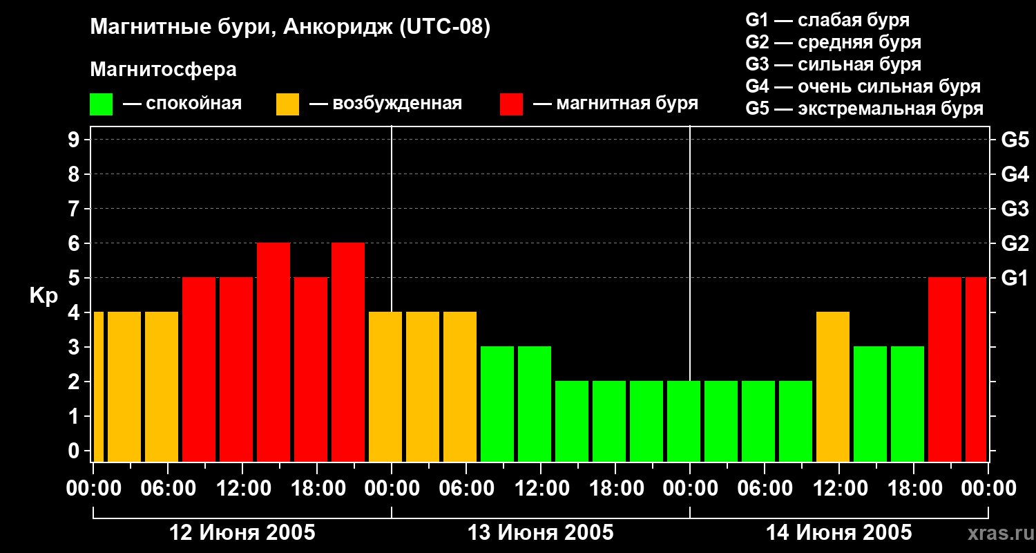 Магнитные бури в Анкоридже — 14 июня 2005 года