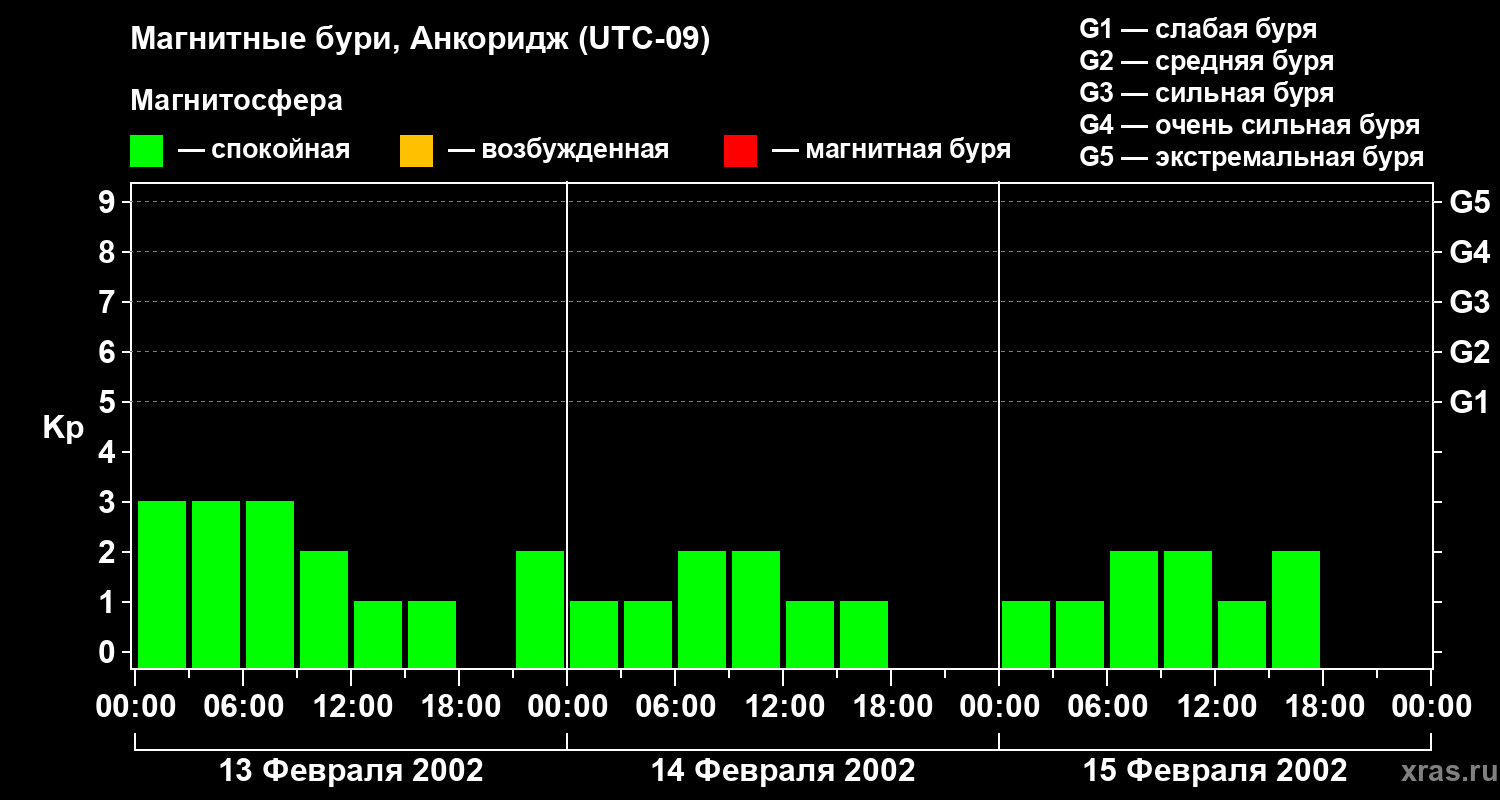 Магнитные бури в Анкоридже в феврале 2002 года
