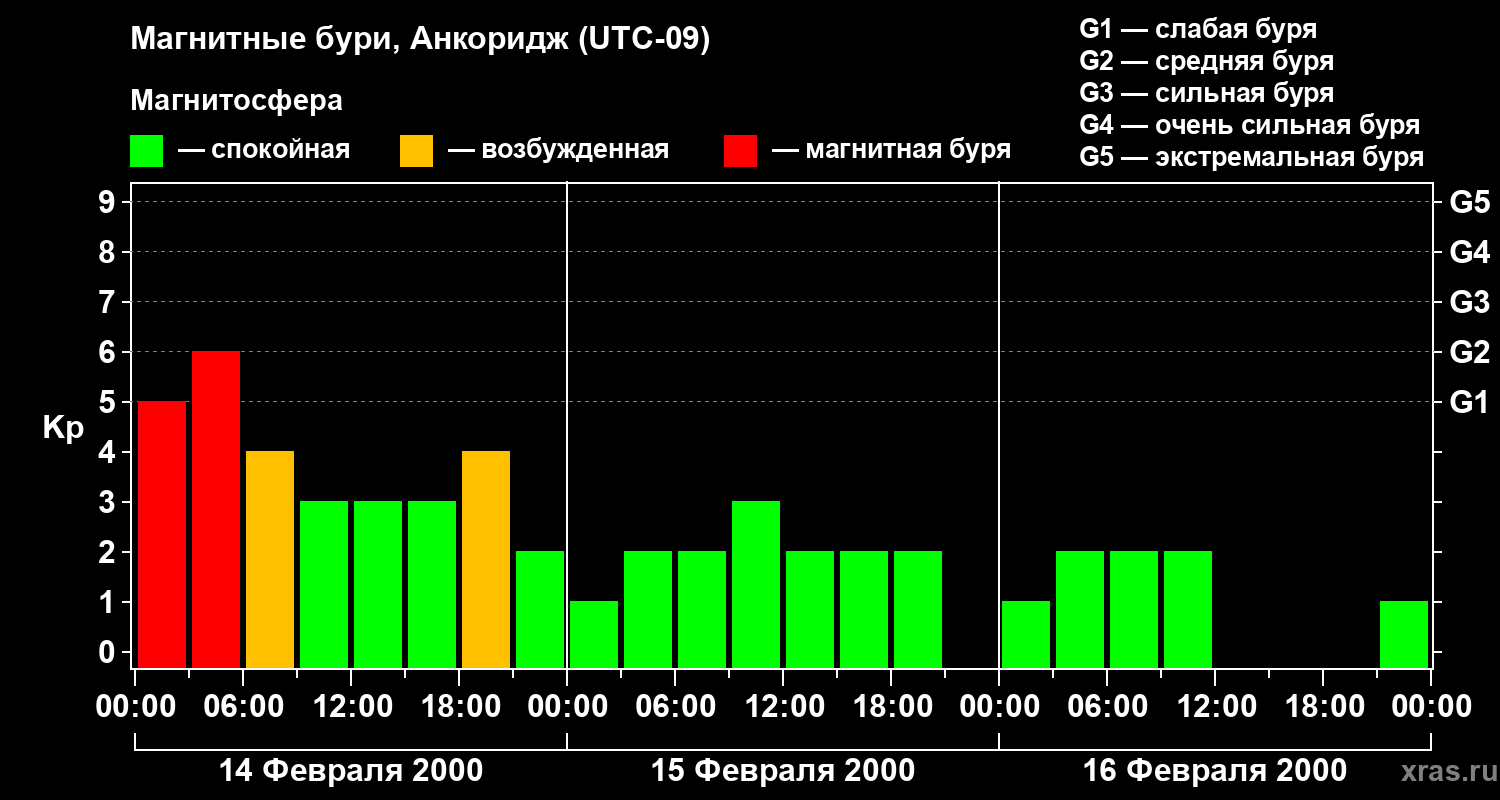 Магнитные бури в Анкоридже — 16 февраля 2000 года