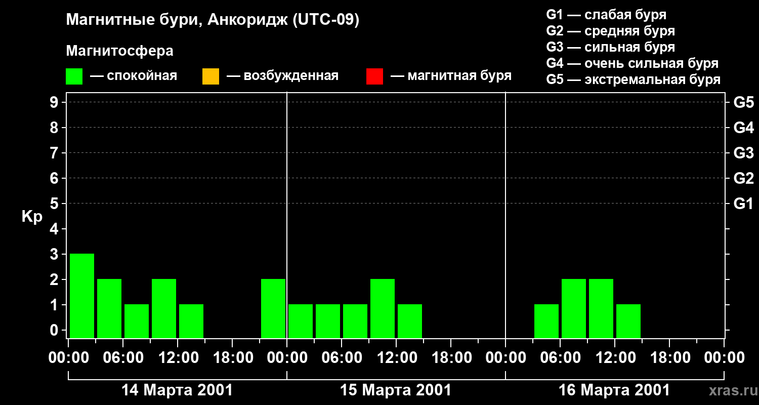 Магнитные бури в Анкоридже — 16 марта 2001 года