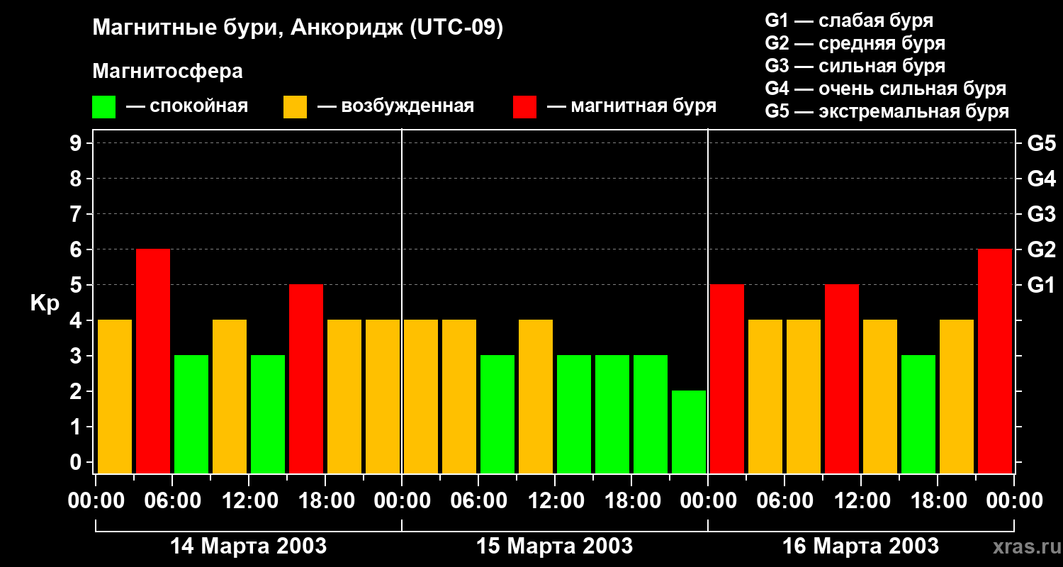 Магнитные бури в Анкоридже — 16 марта 2003 года