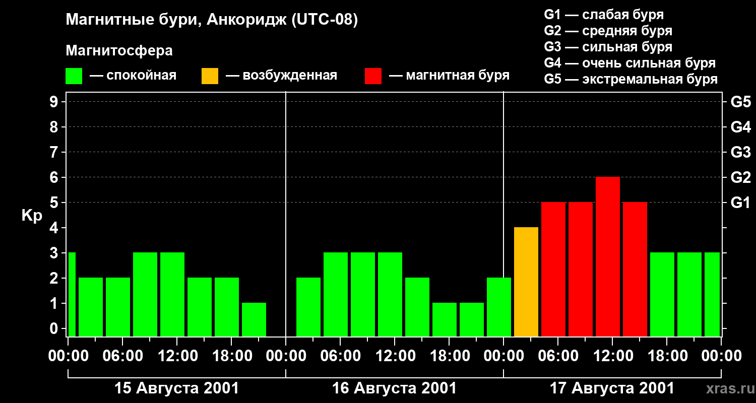 Магнитные бури в Анкоридже 17 августа 2001 года