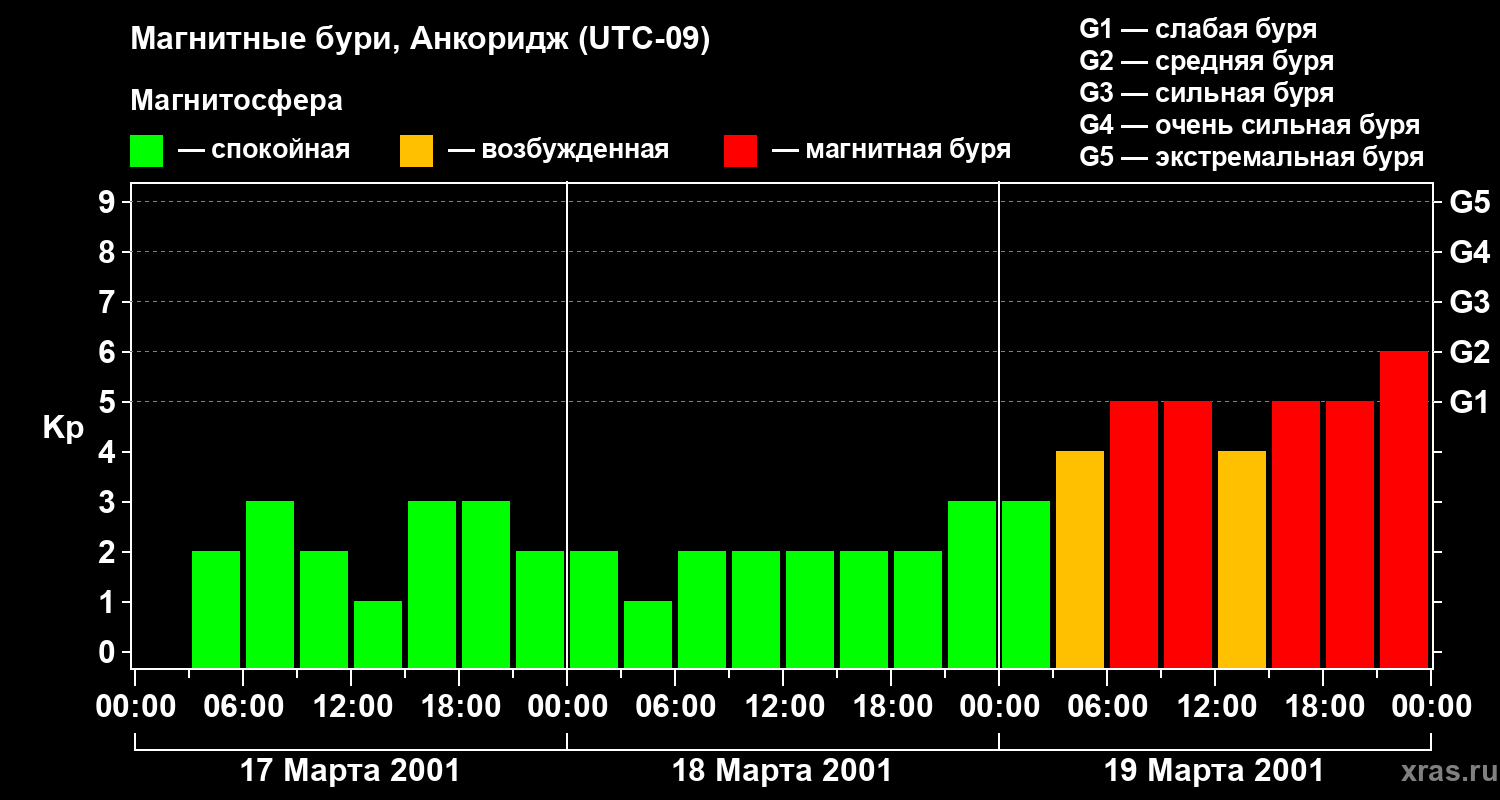 Магнитные бури в Анкоридже — 19 марта 2001 года