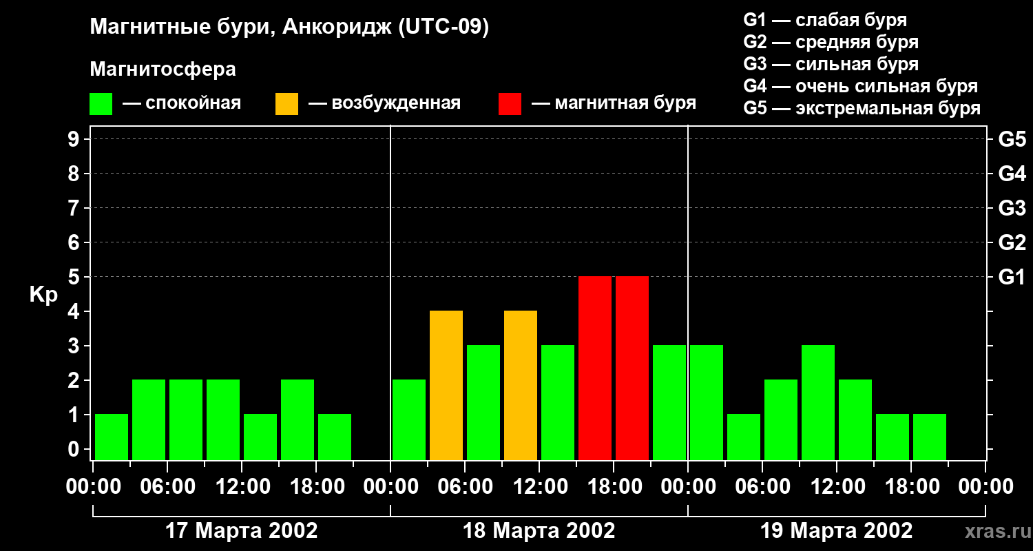 Магнитные бури в Анкоридже в марте 2002 года