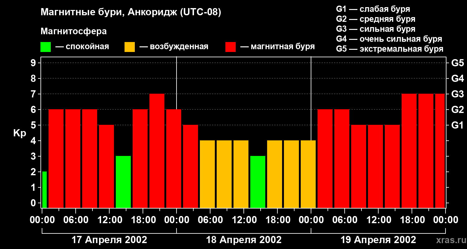 Магнитные бури в Анкоридже в апреле 2002 года