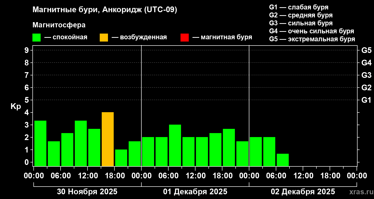 Магнитные бури в Анкоридже 2 декабря 2025 года
