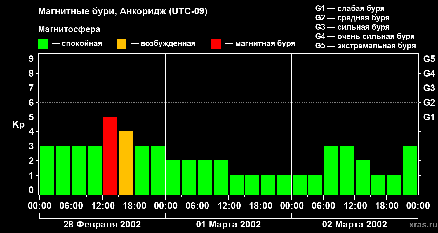 Магнитные бури в Анкоридже — 2 марта 2002 года