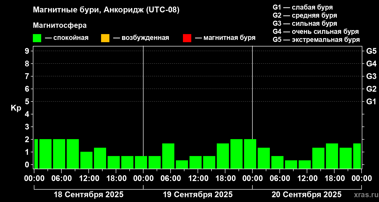 Магнитные бури в Анкоридже 20 сентября 2025 года