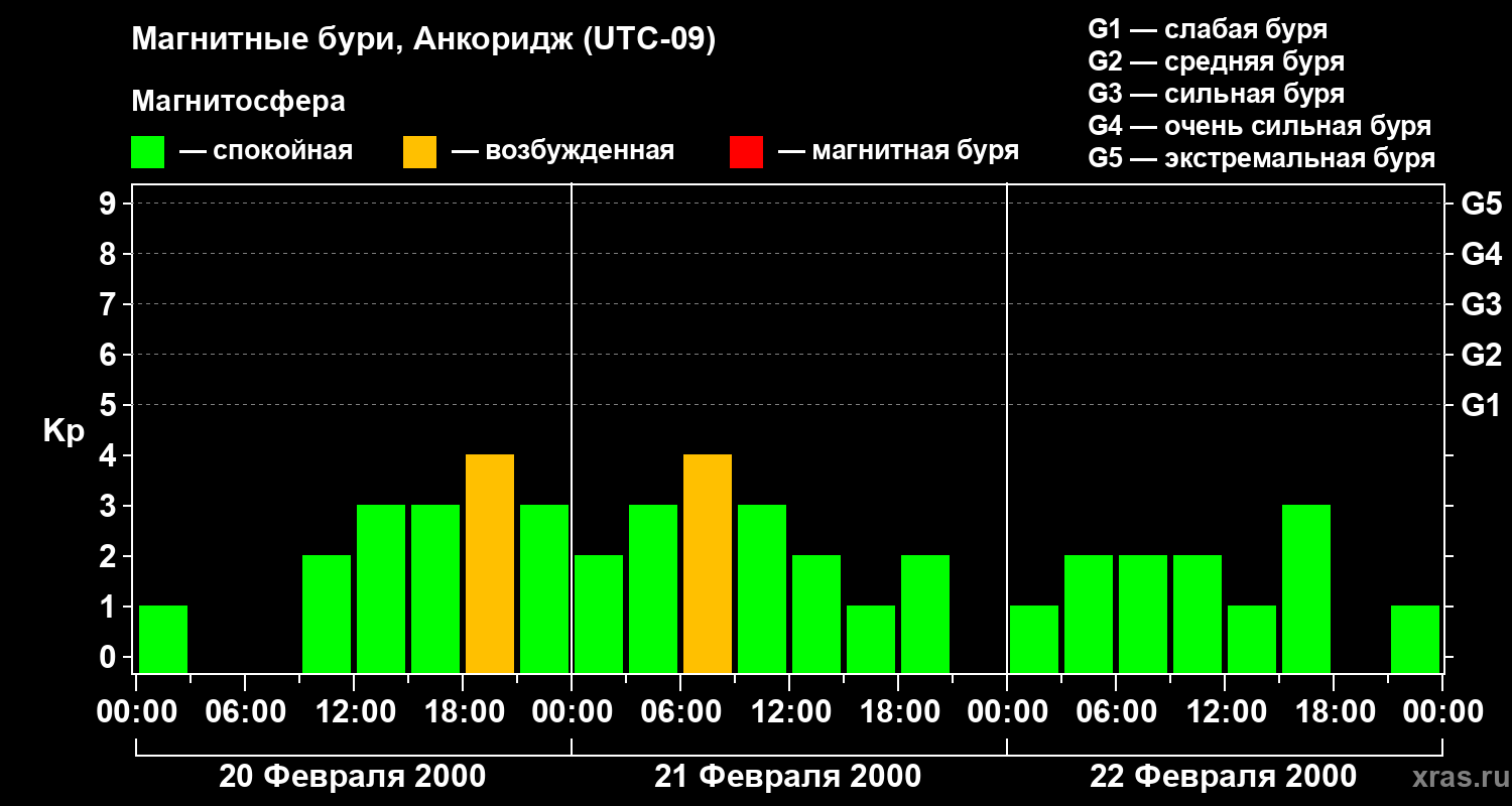 Магнитные бури в Анкоридже — 22 февраля 2000 года