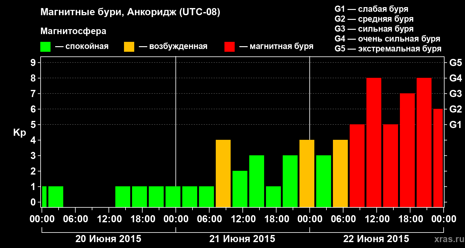 Магнитные бури в Анкоридже — 22 июня 2015 года