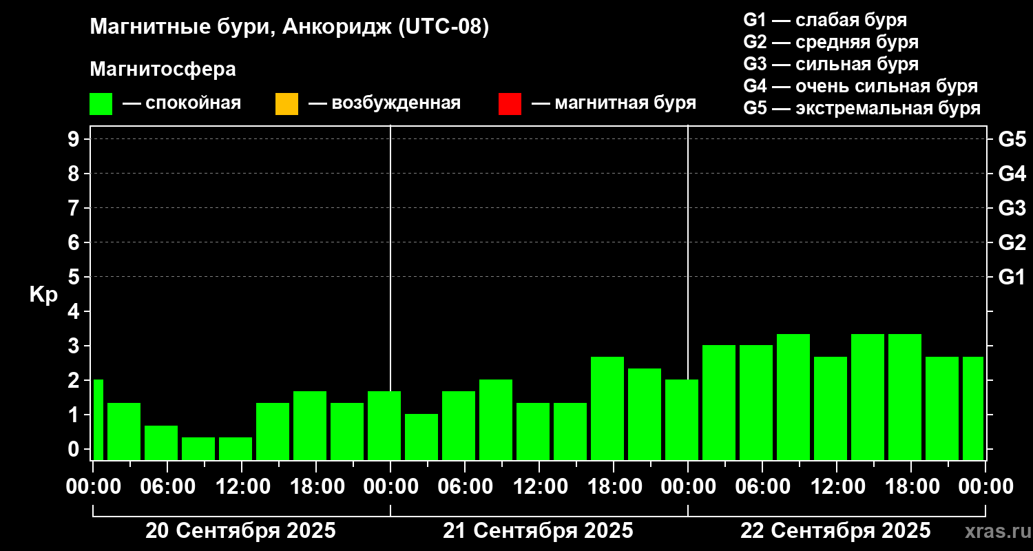 Магнитные бури в Анкоридже 22 сентября 2025 года