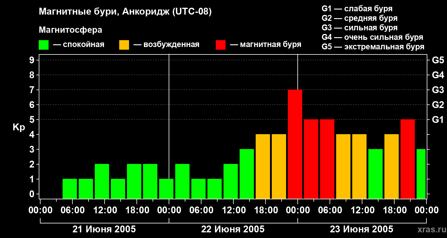 Магнитные бури в Анкоридже — 23 июня 2005 года