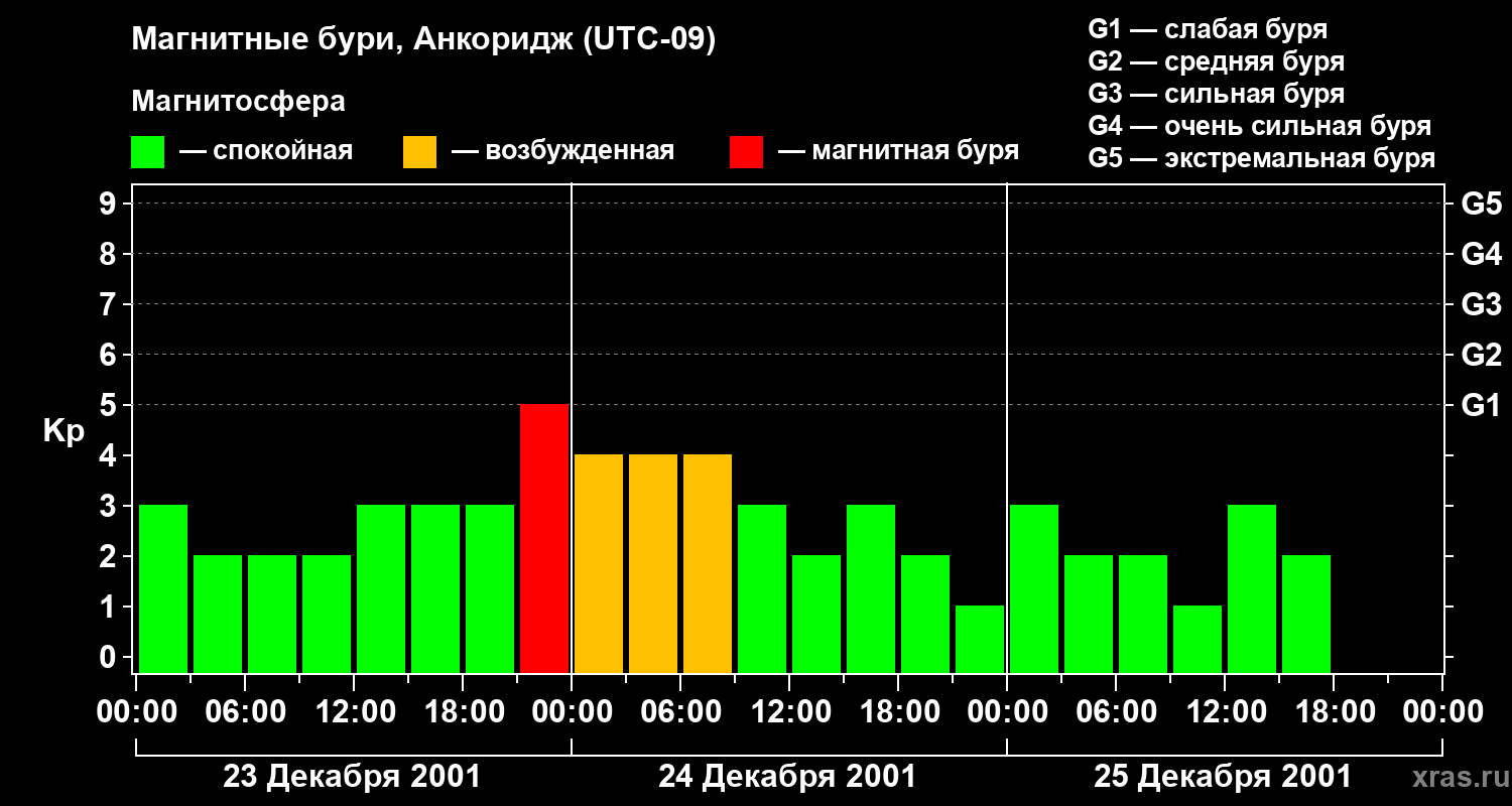 Магнитные бури в Анкоридже — 25 декабря 2001 года