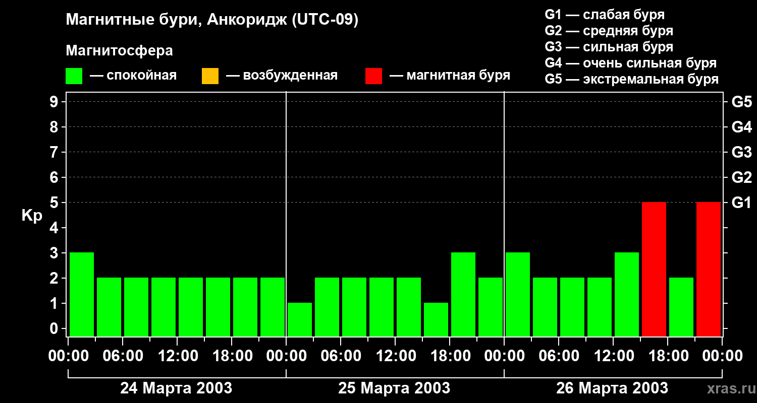 Магнитные бури в Анкоридже — 26 марта 2003 года
